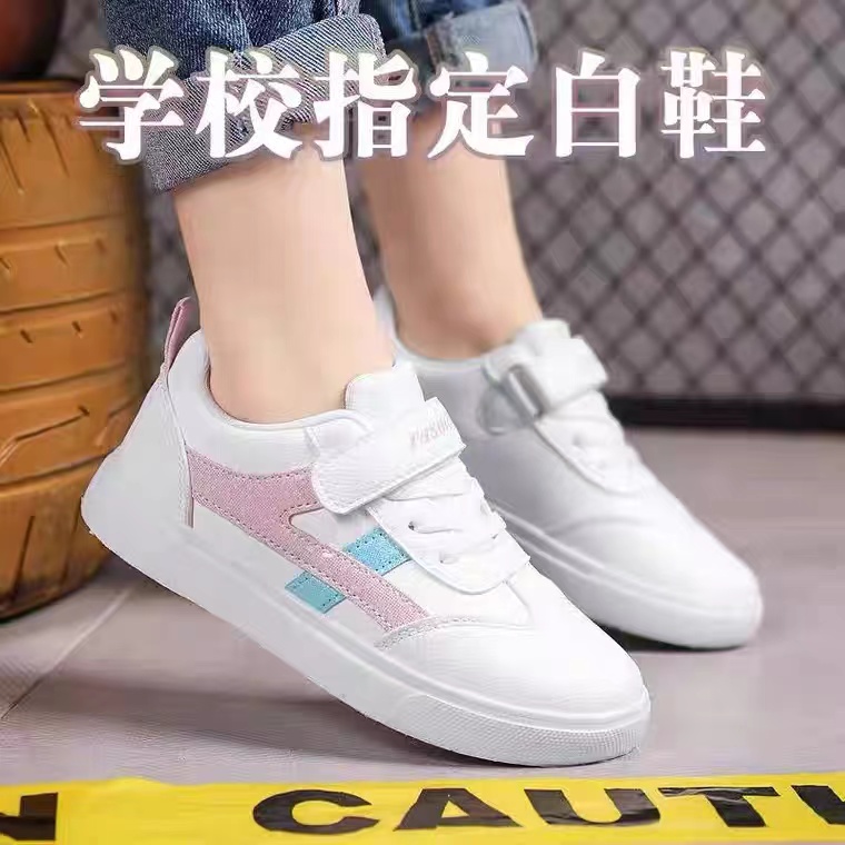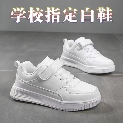 2024儿童指定小白鞋皮面防水防臭休闲男童学生软底女童平底板鞋