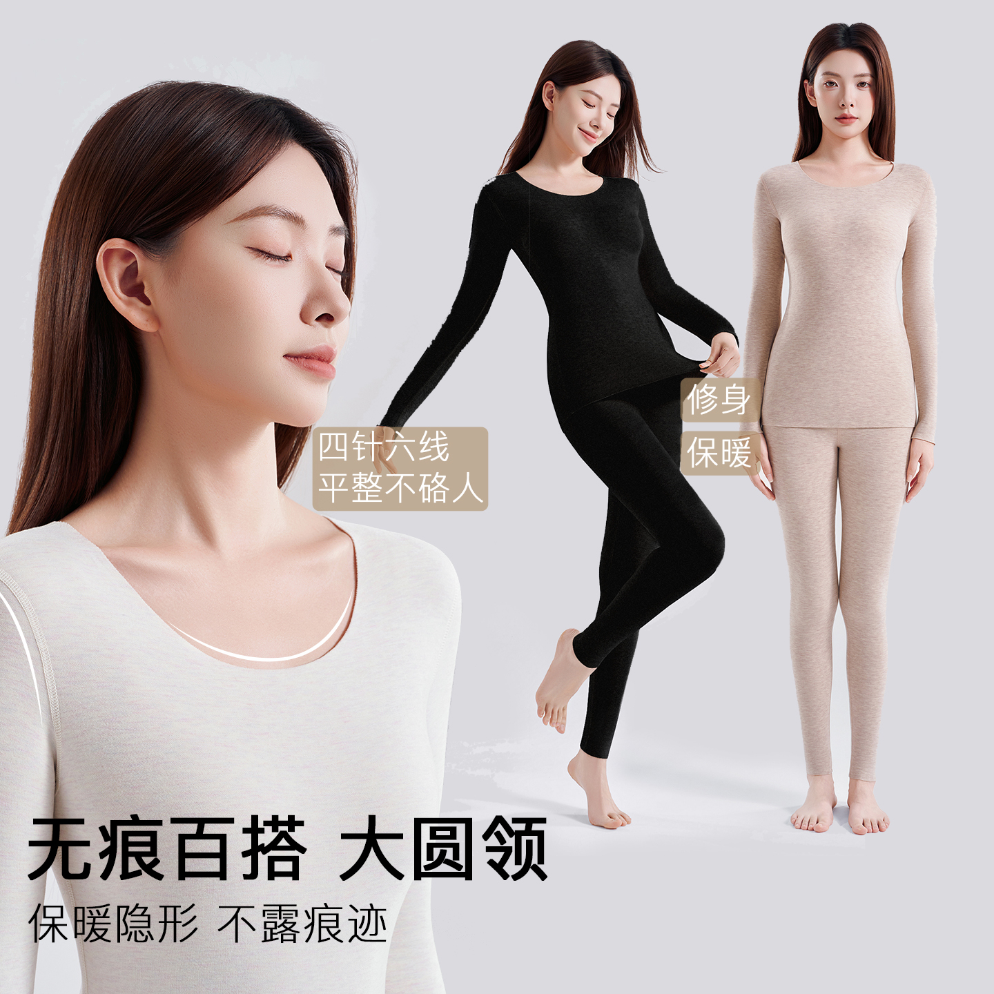 保暖内衣女套装含羊绒蚕丝发热抗菌打底无痕美体冬季内搭秋衣秋裤