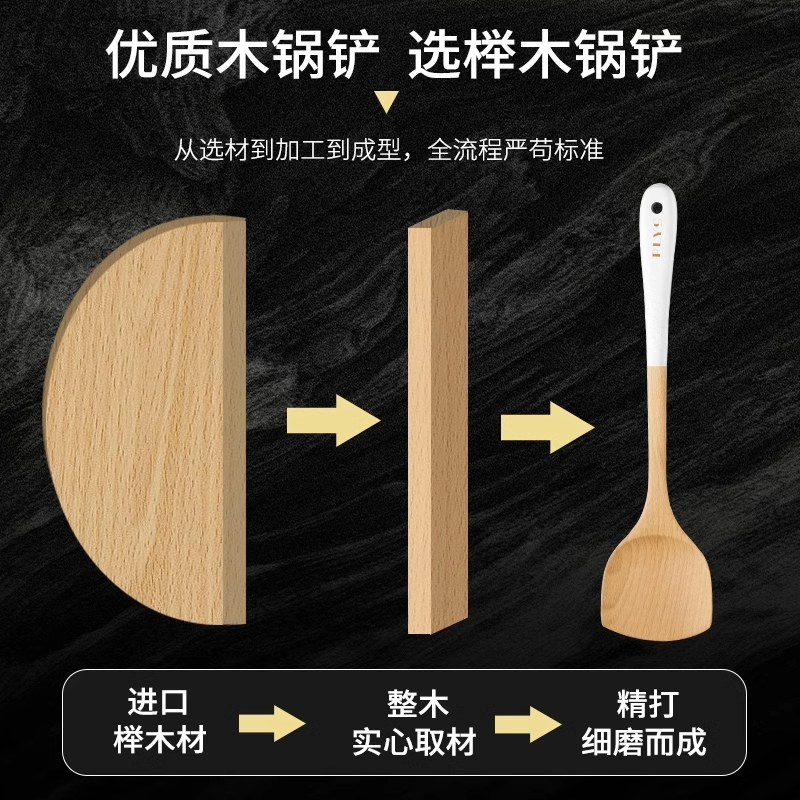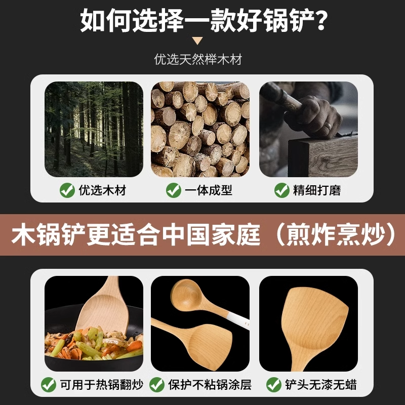 榉木锅铲家用勺子不粘锅专用木质饭勺木铲厨具耐高温厨房实木铲子