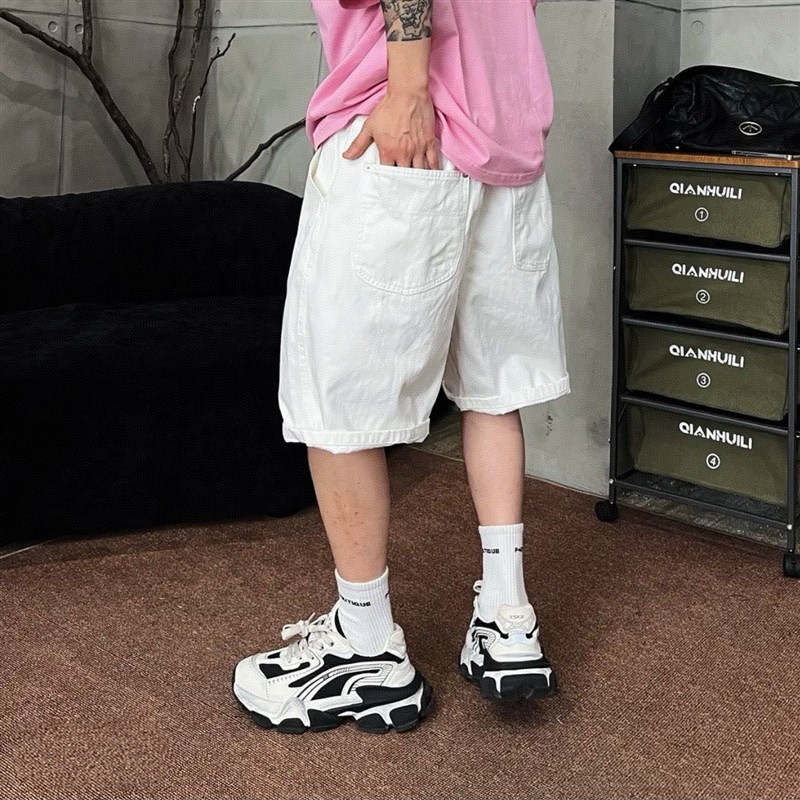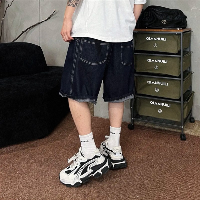 夏季潮牌美式复古定制水洗牛仔短裤男高档简约宽松透气休闲五分裤