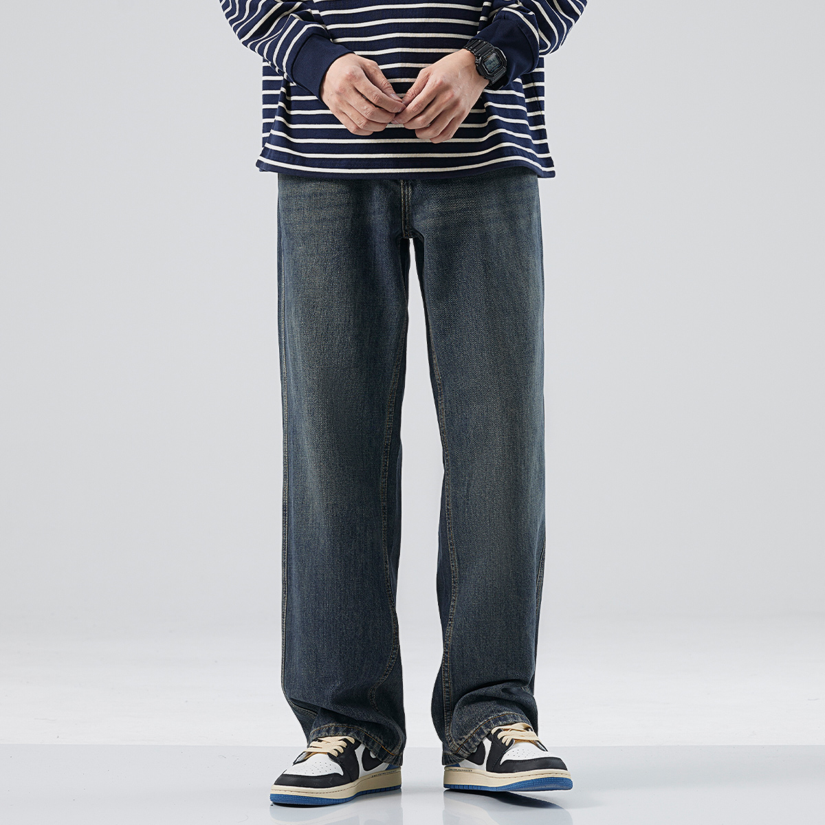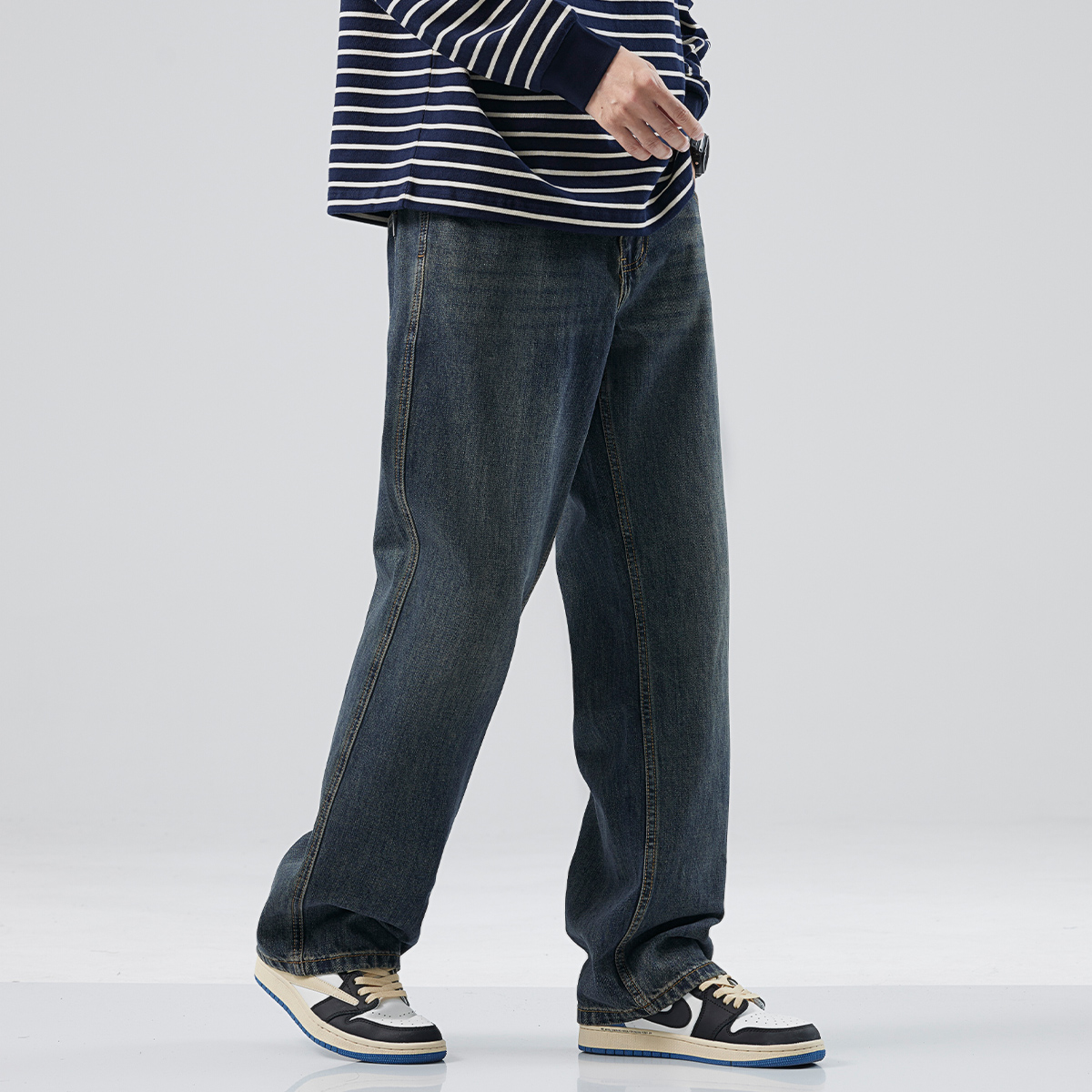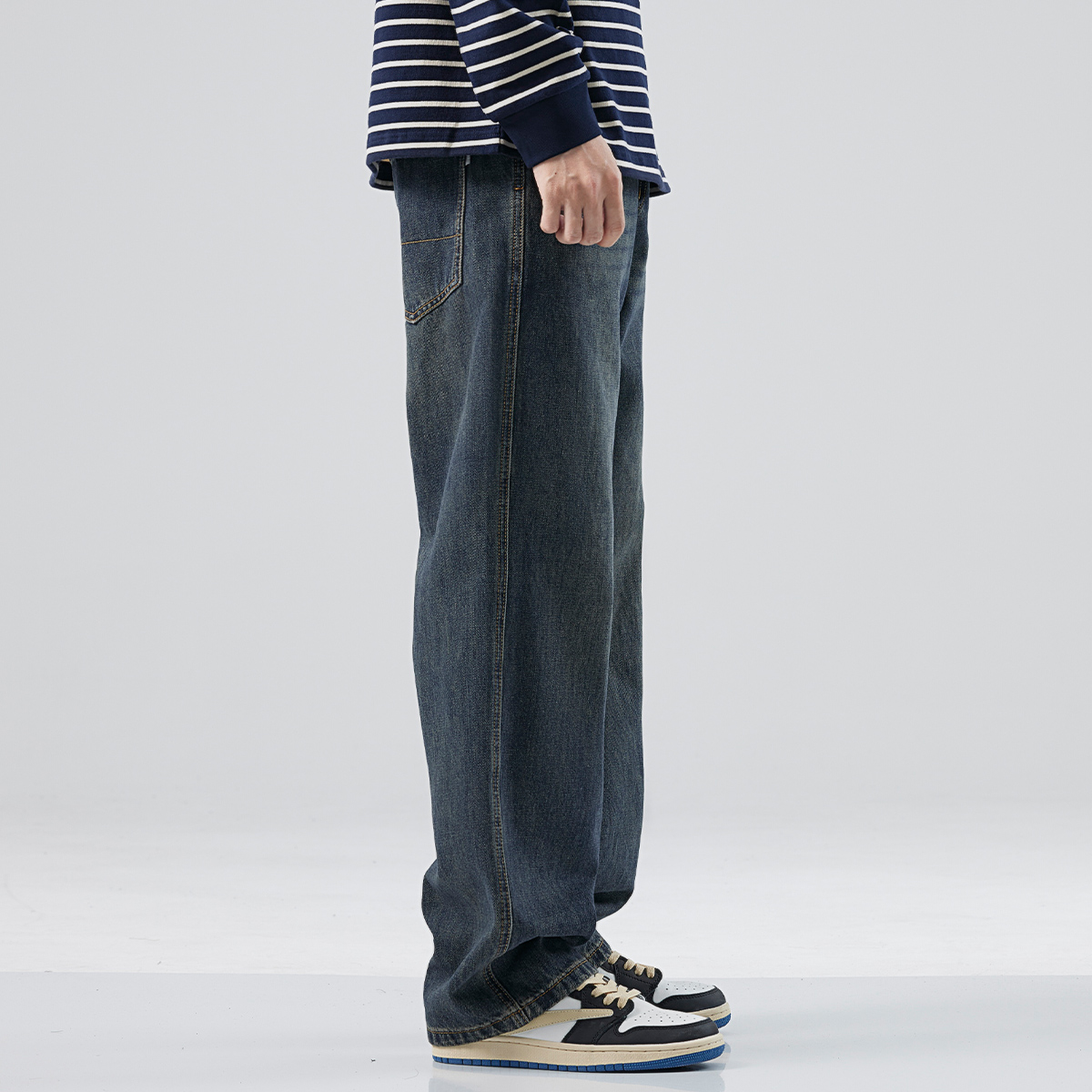 hansca水洗牛仔裤男秋季美式复古潮牌痞帅高级感直筒宽松休闲长裤