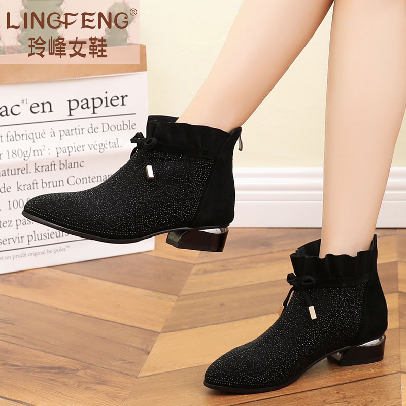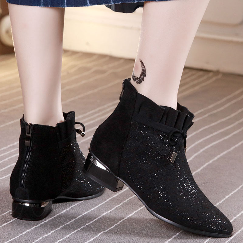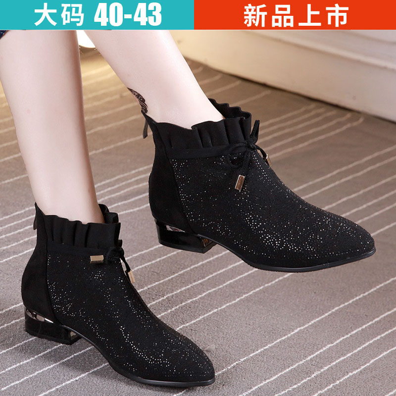 2024真皮大码女鞋41-43春季加绒瘦瘦短靴百搭平底棉鞋新款44皮鞋