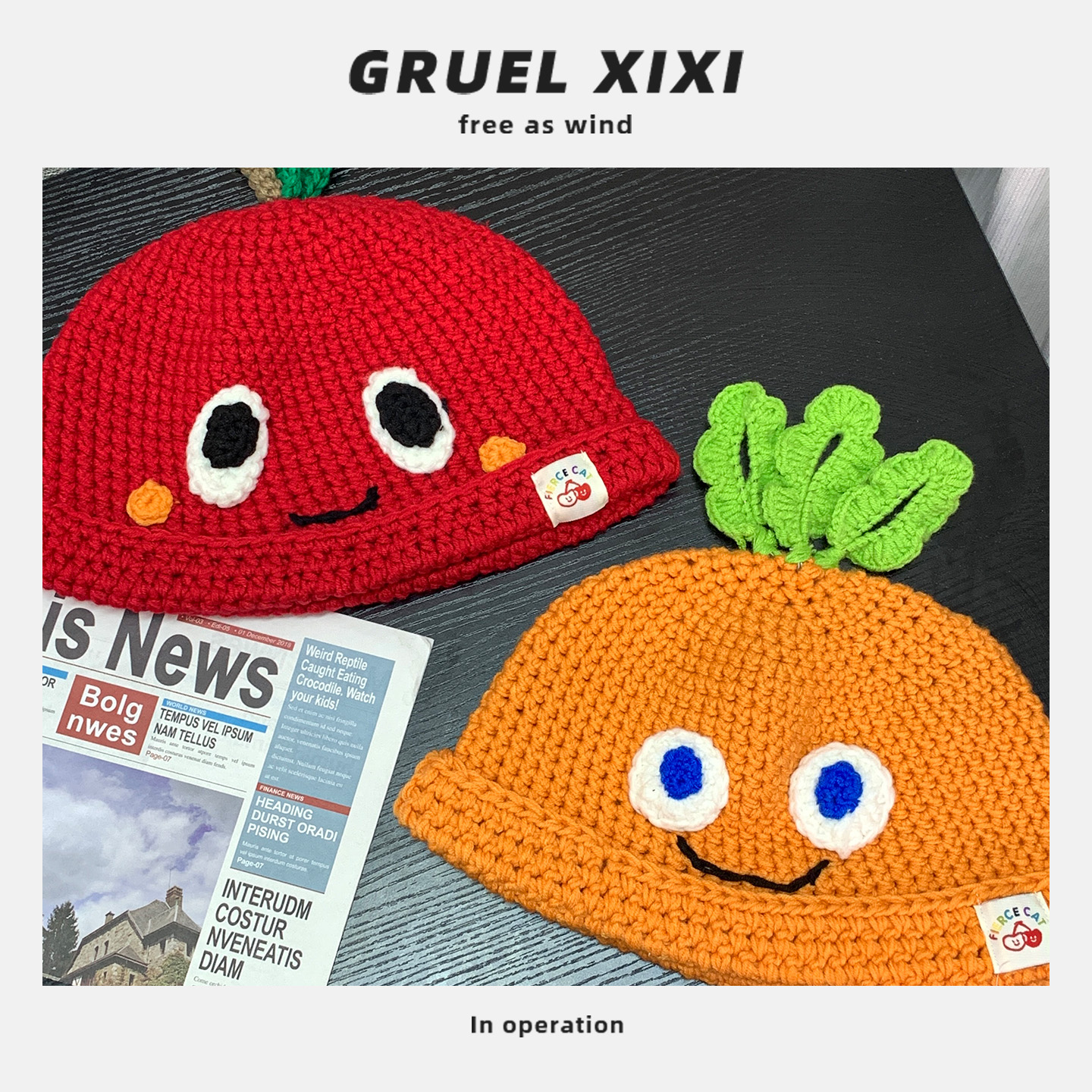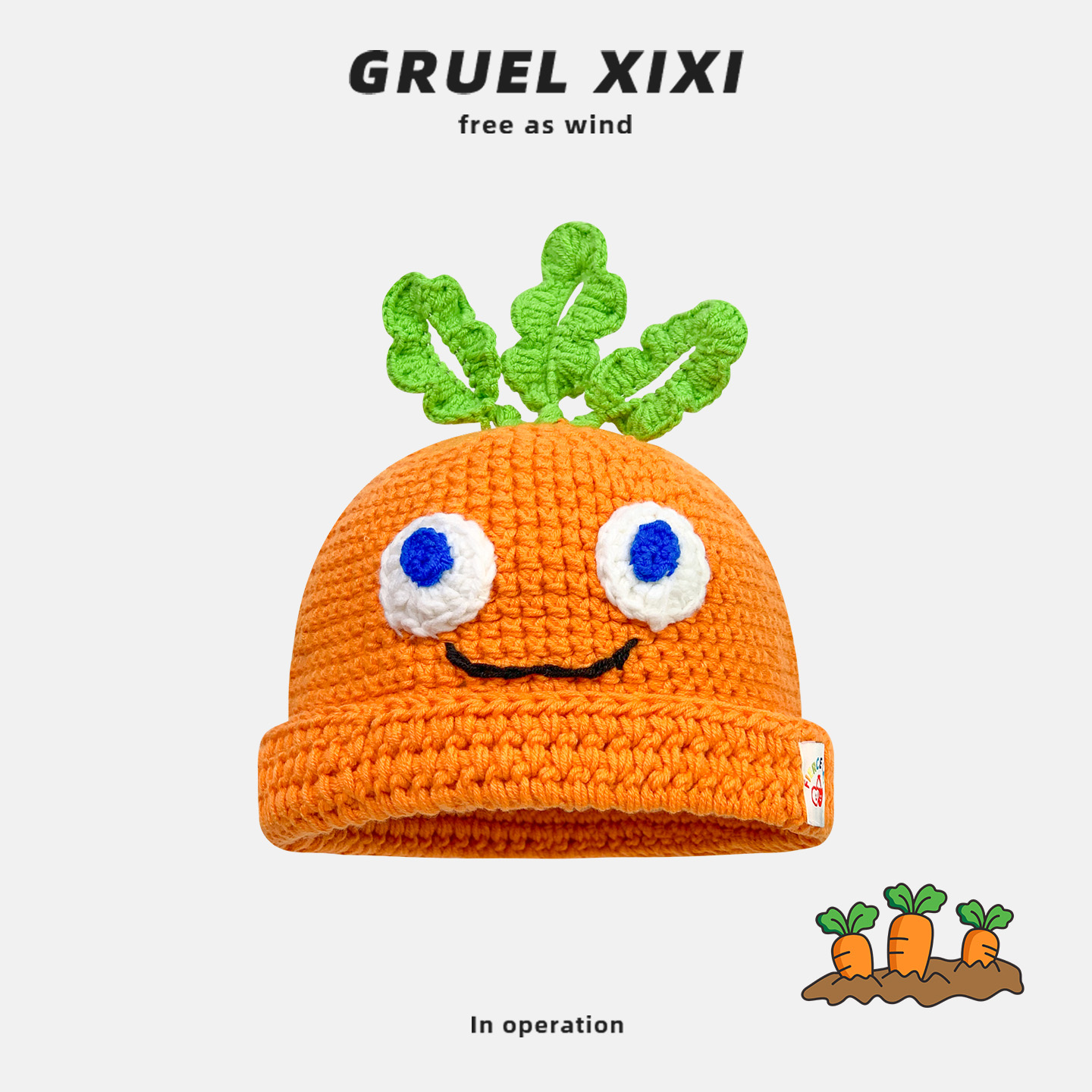 2025年韩版新款可爱搞怪毛线帽子女亲子款保暖卡通胡萝卜针织帽子