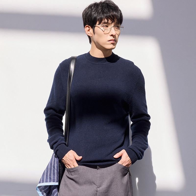 思诺芙德半高领山羊绒男装简约毛衣25秋冬新款针织休闲内搭打底衫