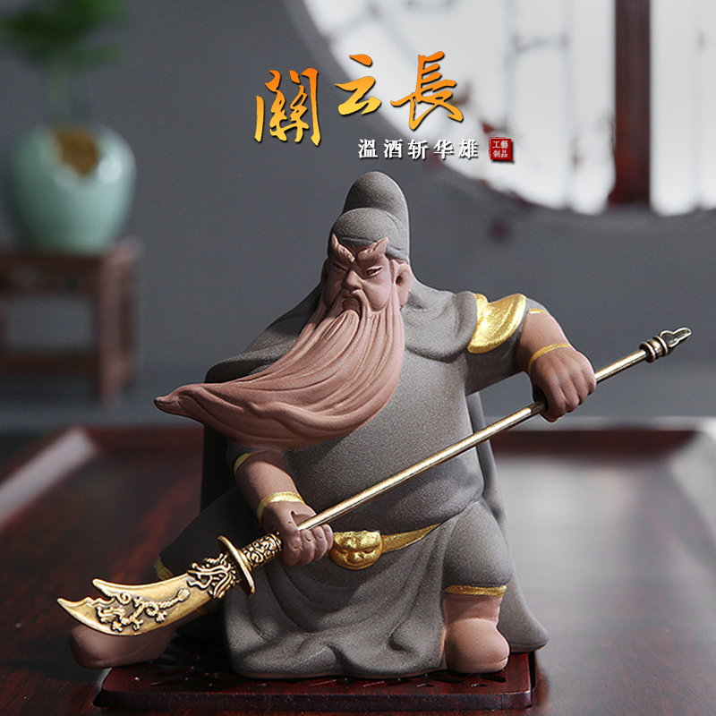 招财镇宅关公关云长茶宠摆件精品可养紫砂个性武财神车载茶道中人