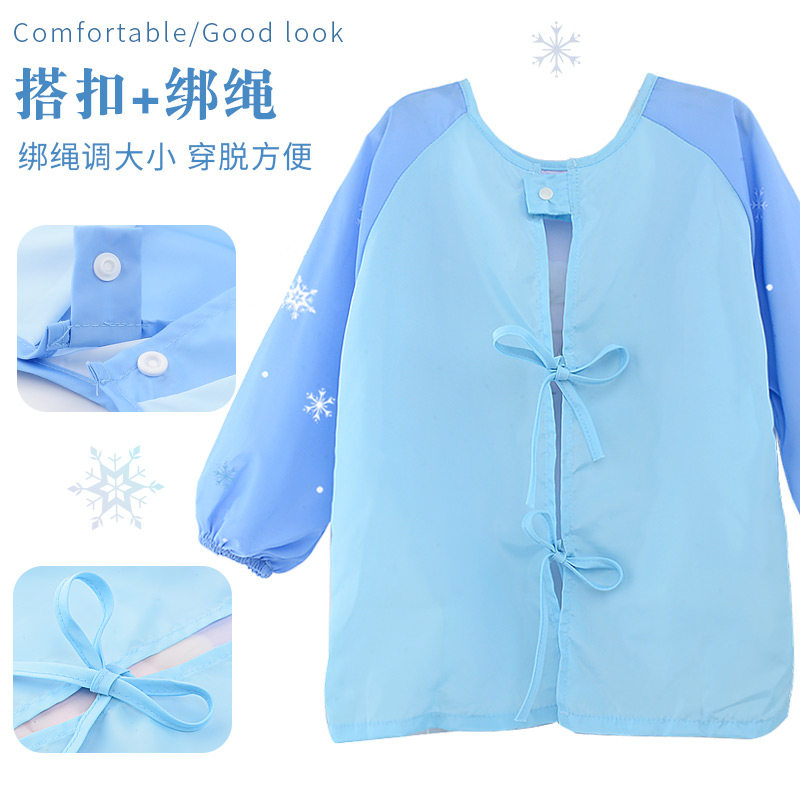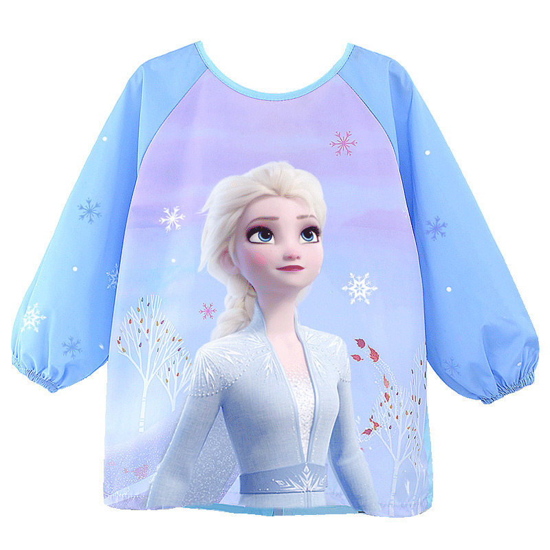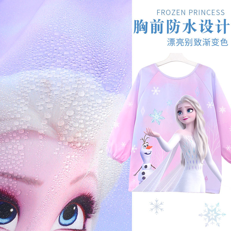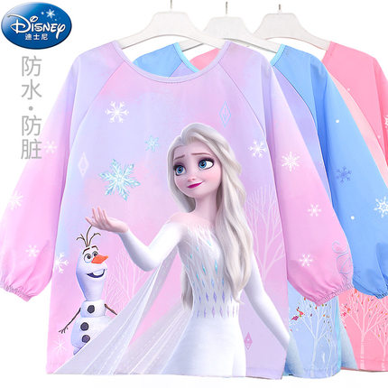 迪士尼儿童画画罩衣女童防水防脏爱莎公主围裙宝宝吃饭围兜反穿衣
