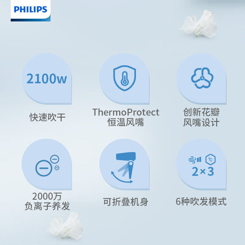 飞利浦吹风机BHD378家用负离子护发电吹风吹头发强力风筒十大品牌