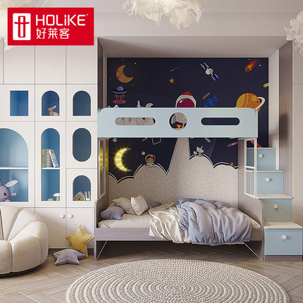 好莱客儿童房全屋定制 上下床隔断设计 二胎房间高低床童趣榻榻米