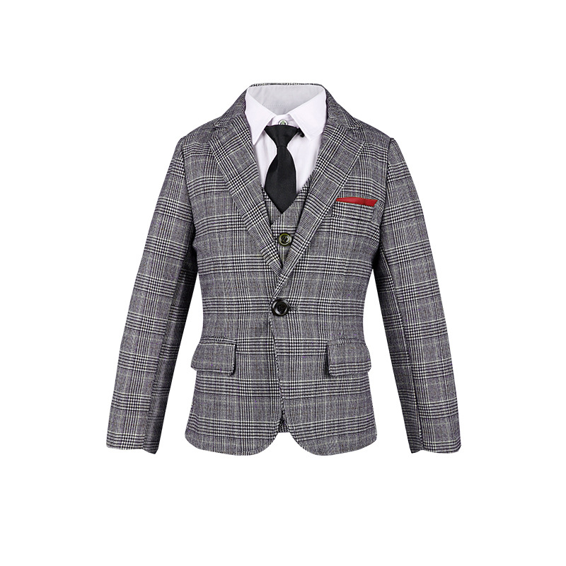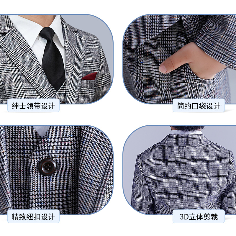 男童秋季格子西装儿童休闲西服中小童韩版套装演出服婚礼花童礼服