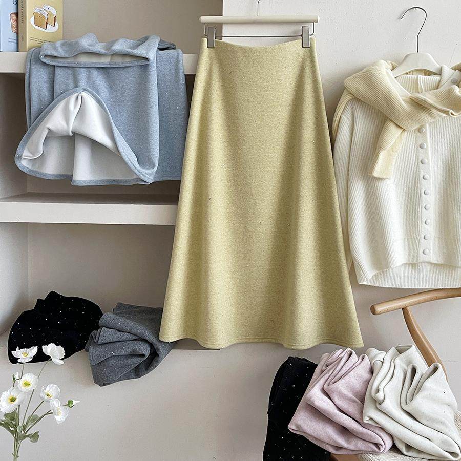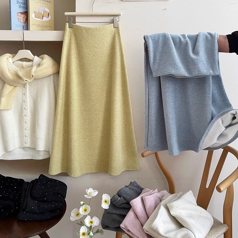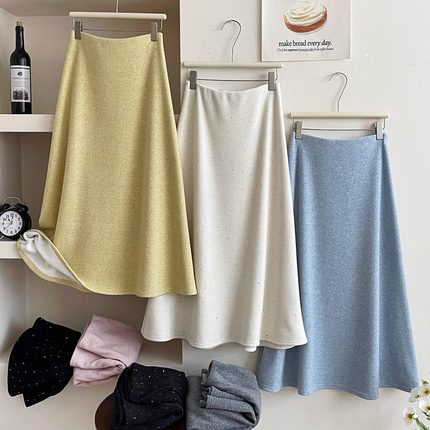 法式加绒糯米羊绒毛巾呢料鱼尾半身裙女秋冬烫钻闪闪包臀a字伞裙
