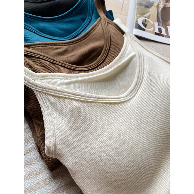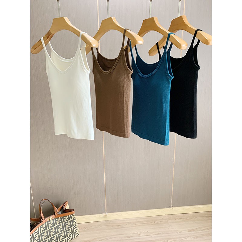 云柔体感~经典纯色无缝一体含胸垫~高弹显瘦针织吊带打底背心女夏