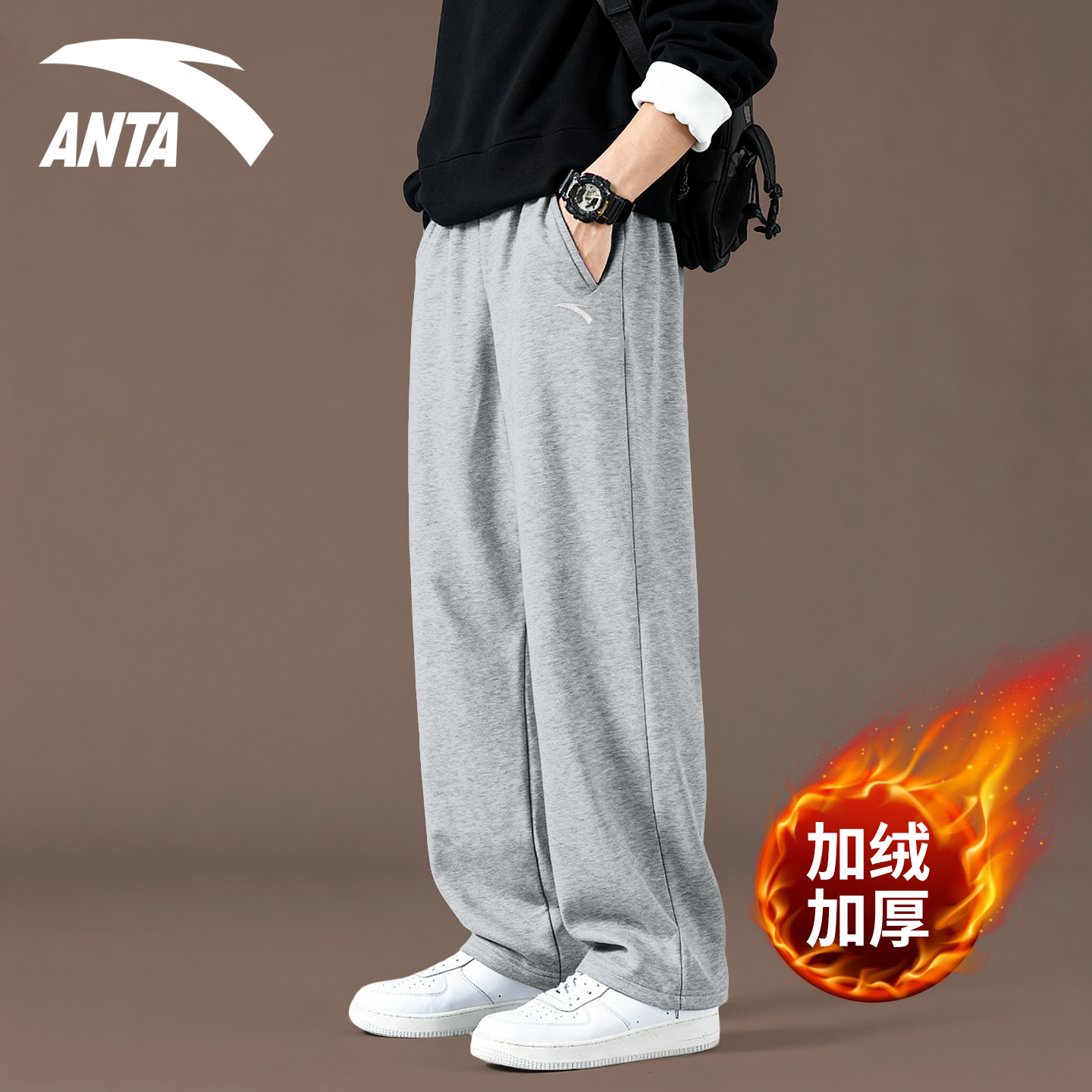 安踏加绒运动裤男裤2025冬季加厚保暖针织长裤宽松休闲直筒裤子男