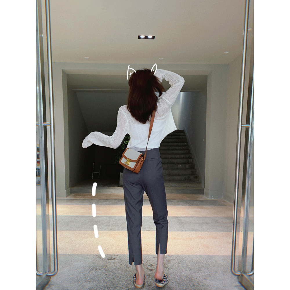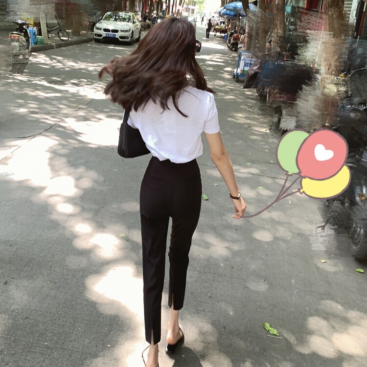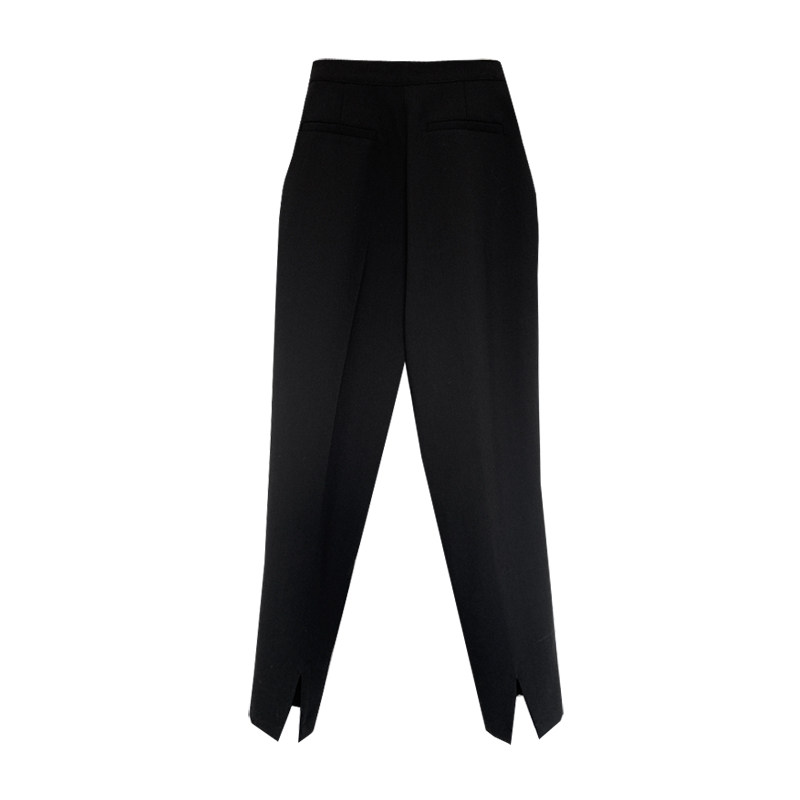 BIGYU瘦成纸片人 显瘦黑色裤子直筒小脚西装裤九分开叉烟管裤西裤