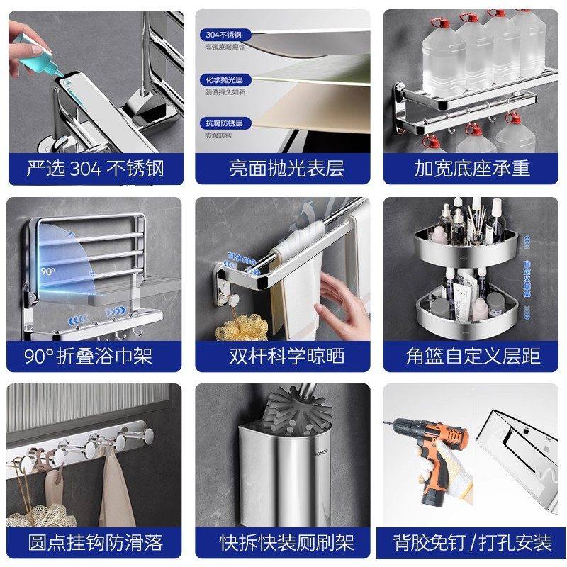 九牧卫浴卫生间不锈钢浴巾架毛巾架一体五件套置物架五金挂件套装