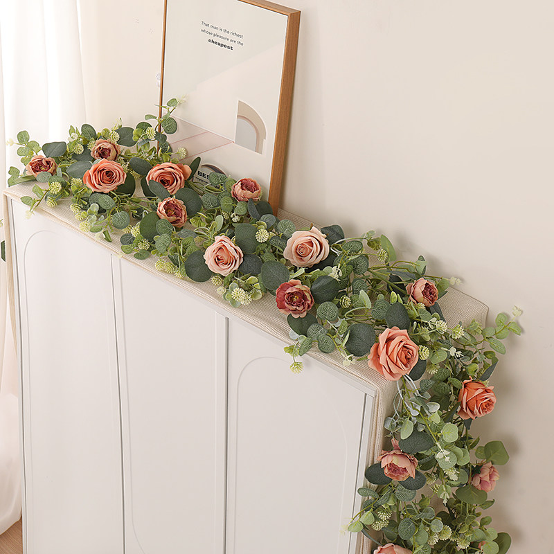 仿真玫瑰花藤山茶花藤条假花植物绣花花树藤装饰居家管道缠绕遮挡