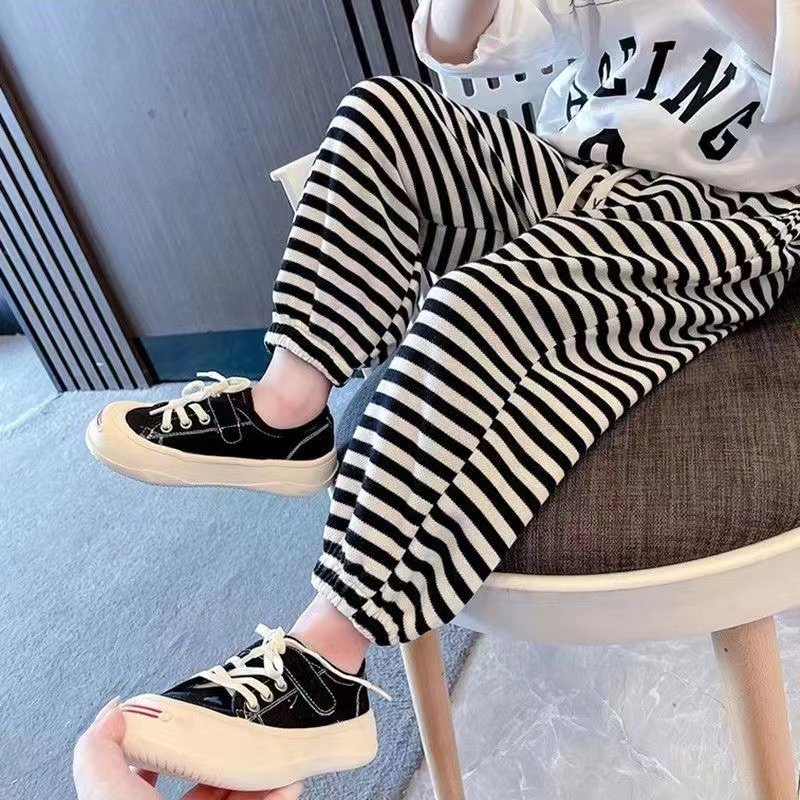 儿童新款条纹卫裤女宝宽松休闲裤夏季男童时髦裤韩版女童条纹裤潮