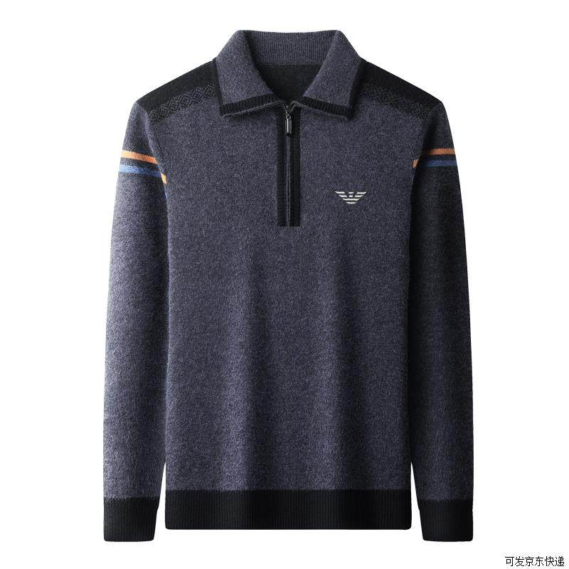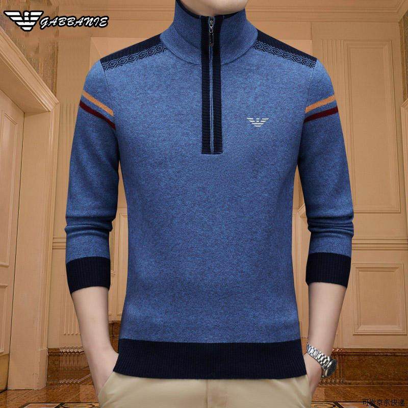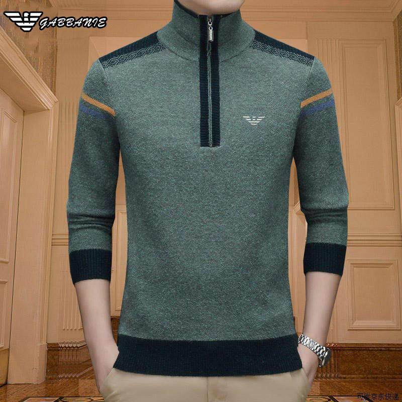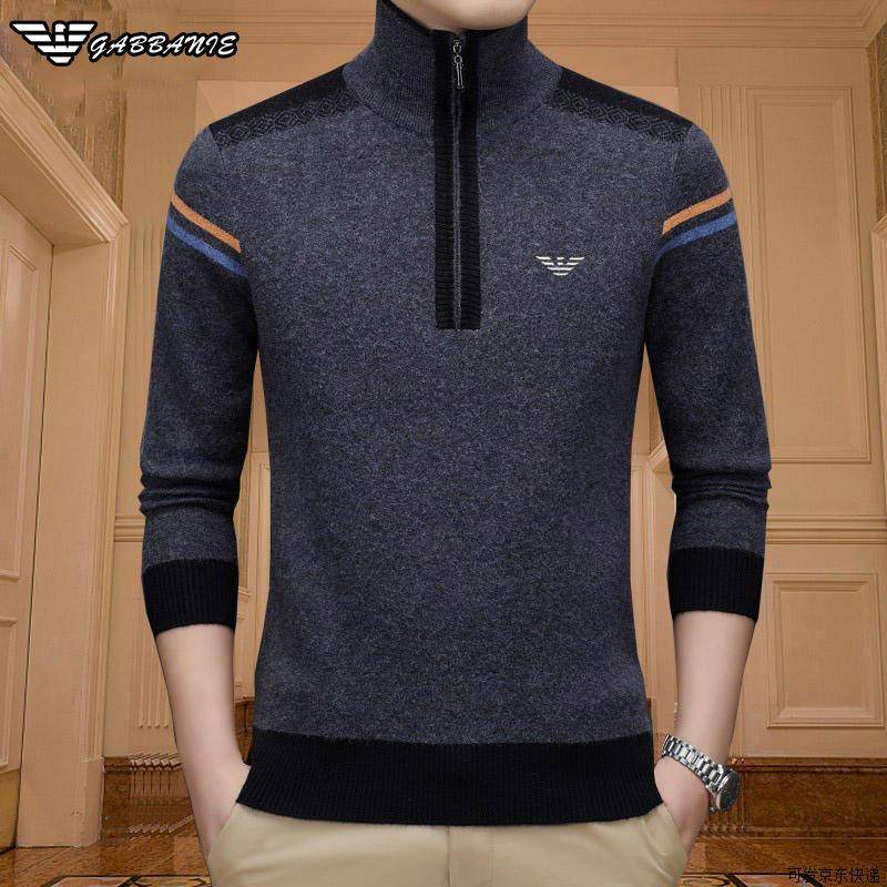 正品意大利高领抗起球羊毛衫男冬季加厚保暖羊绒衫可翻领拉链毛衣