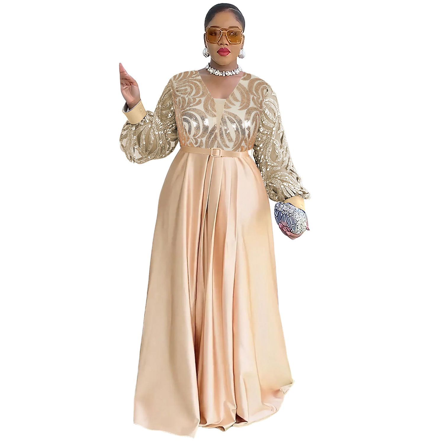 欧美大码长裙非洲蕾丝长袖V领聚会连衣裙气质优雅 wedding dress