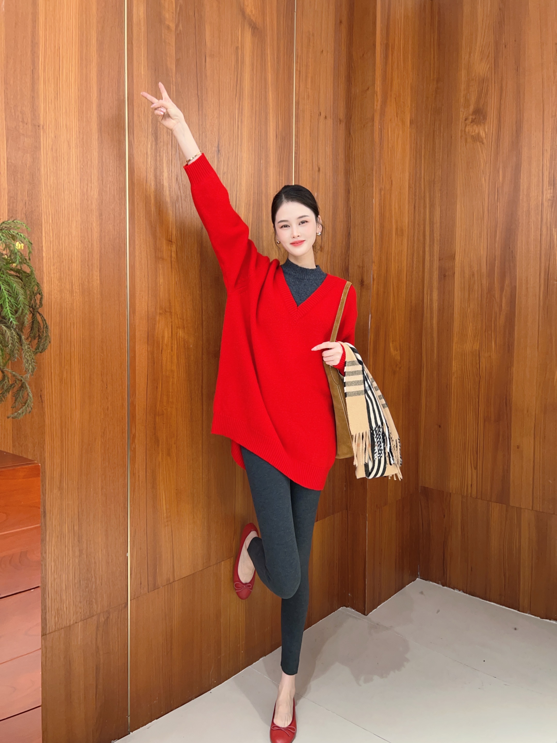 MissYu2025秋冬新款欧货宽松长袖针织衫中长款毛衣羊毛假两件女士