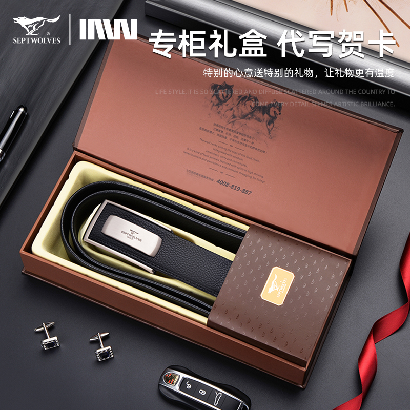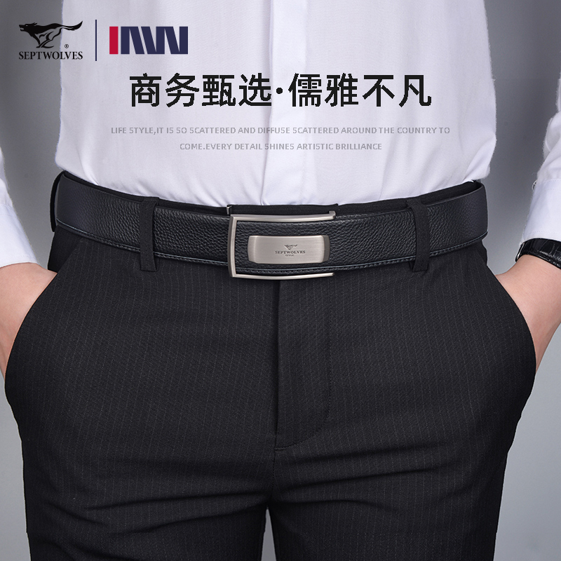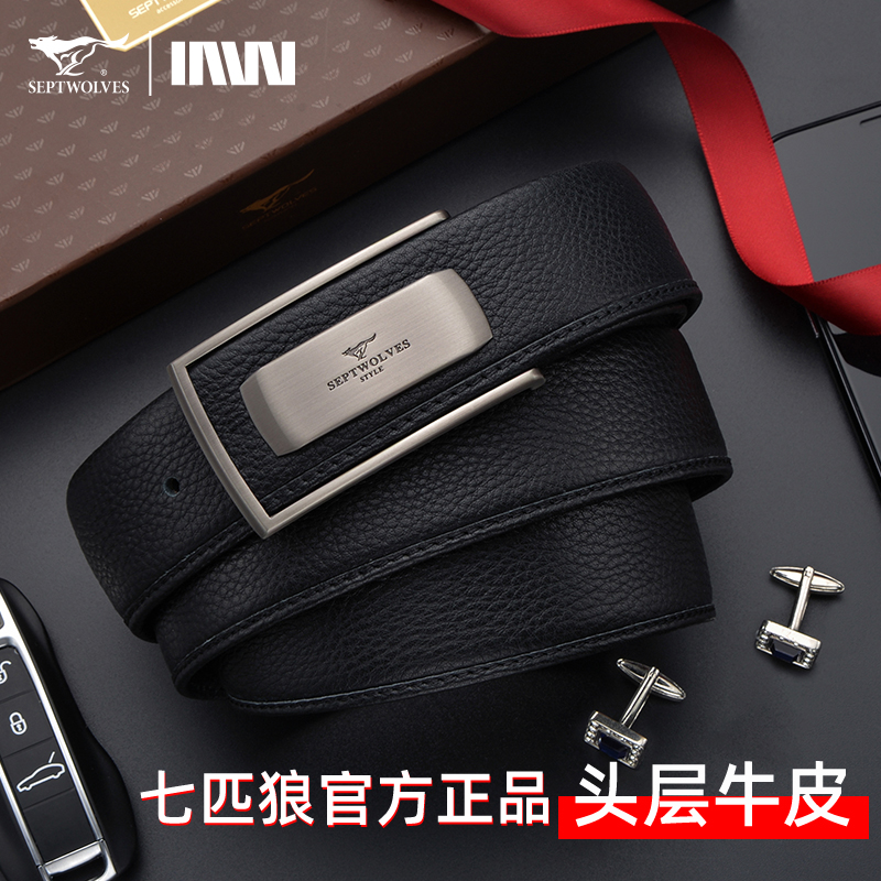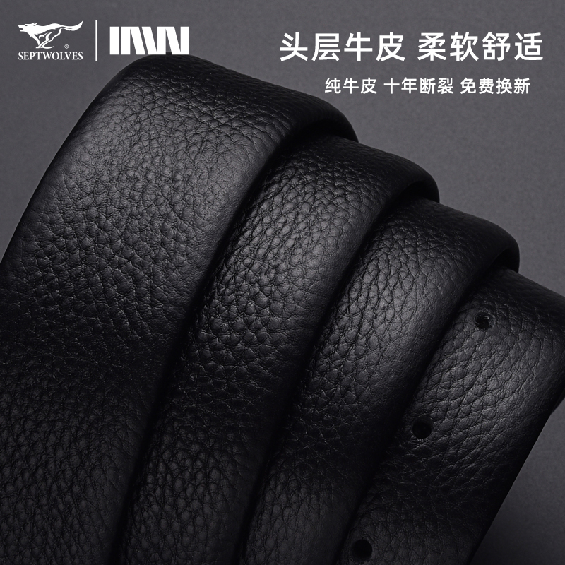 七匹狼内扣皮带男真皮平滑扣内穿式商务腰带纯牛皮男士裤带年轻人