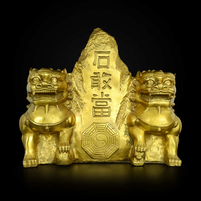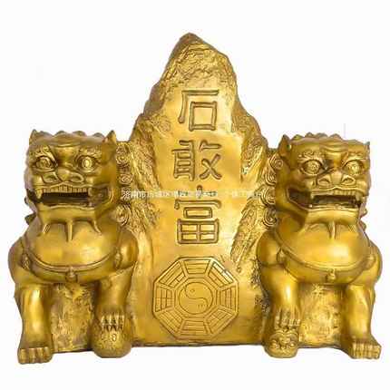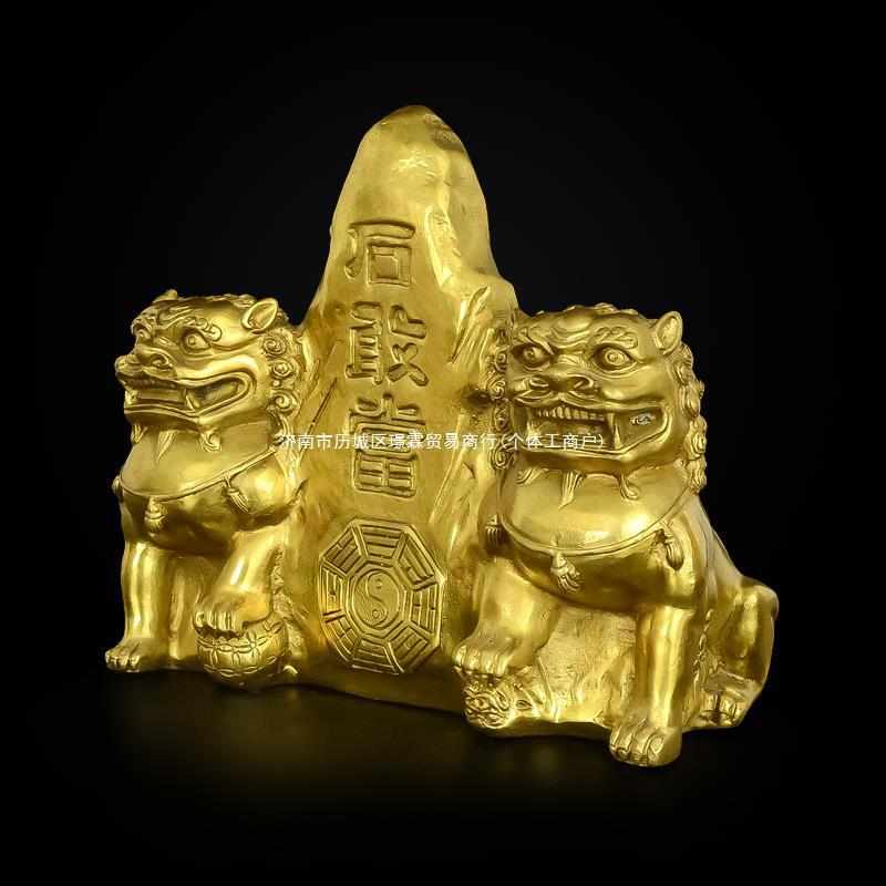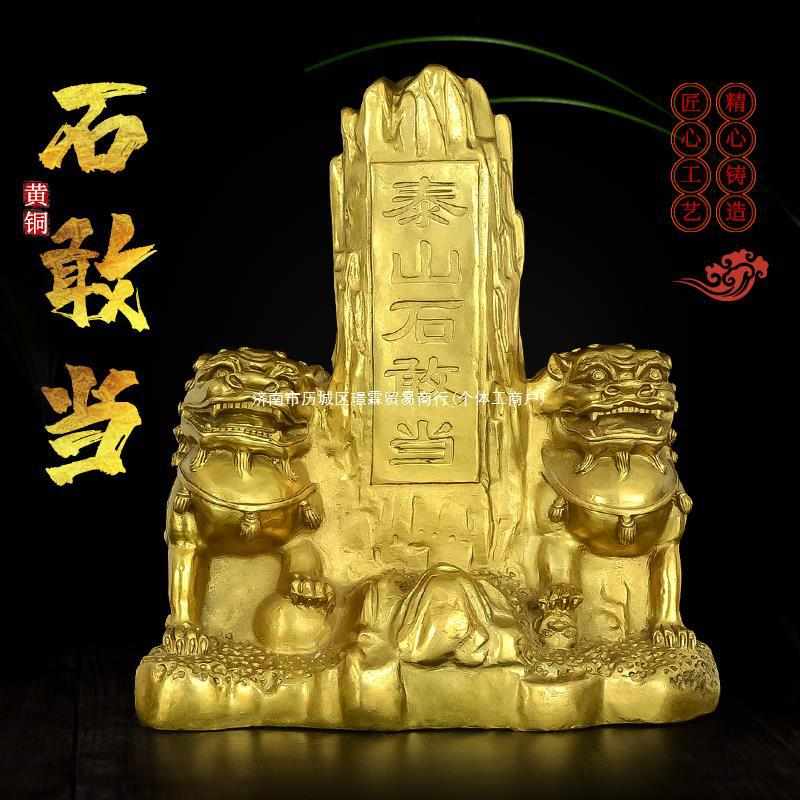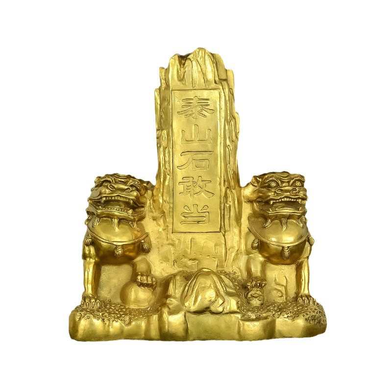 铜泰山石敢当室内室外化路冲摆件 铜双狮石敢当 铜狮子摆件