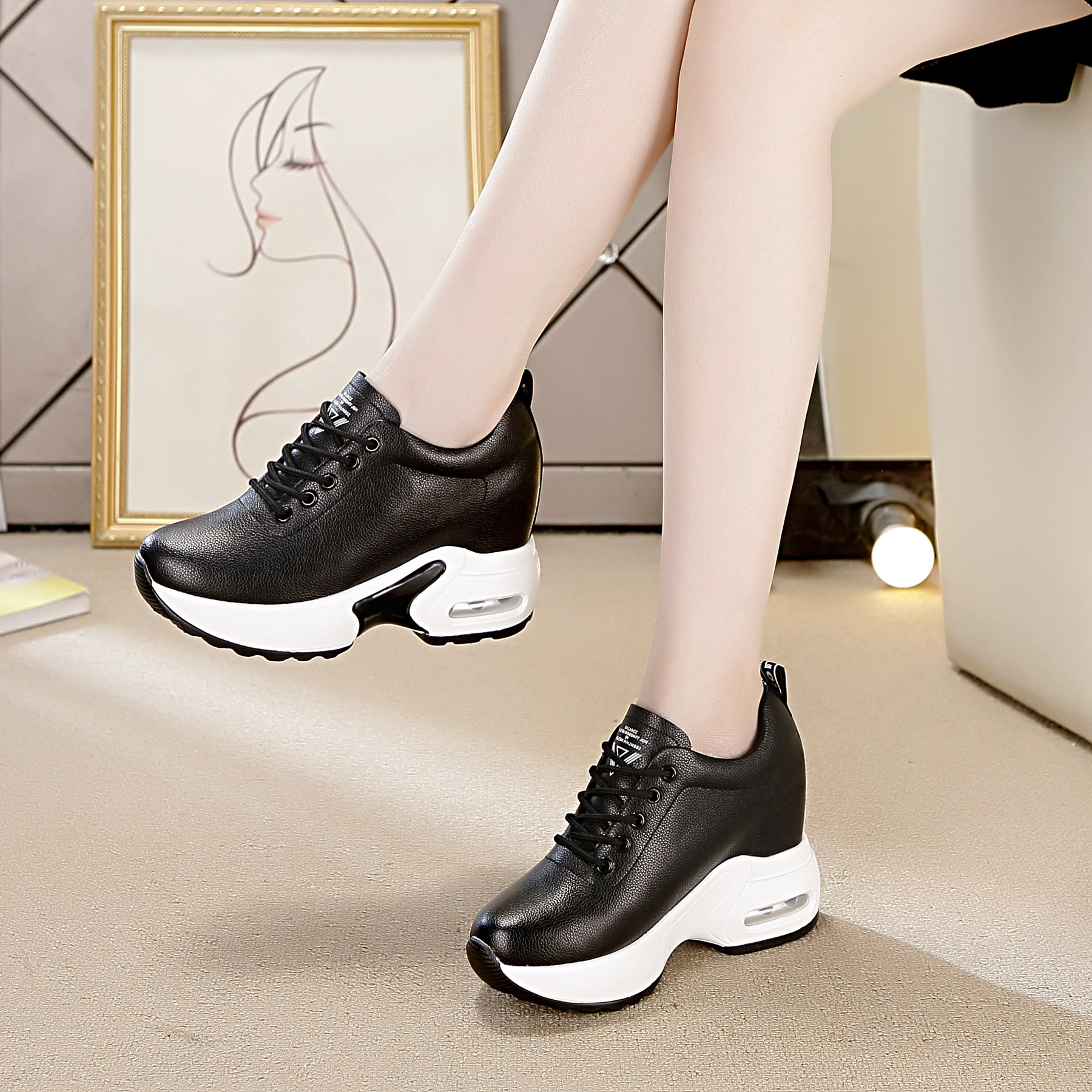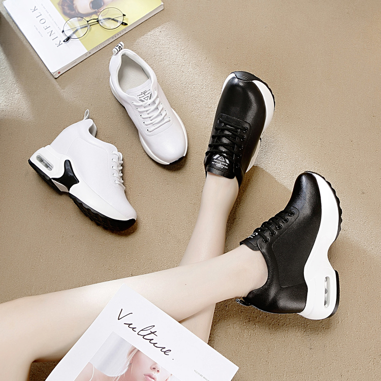 真皮内增高小白鞋女新款韩版一脚蹬女鞋百搭休闲厚底运动鞋10cm