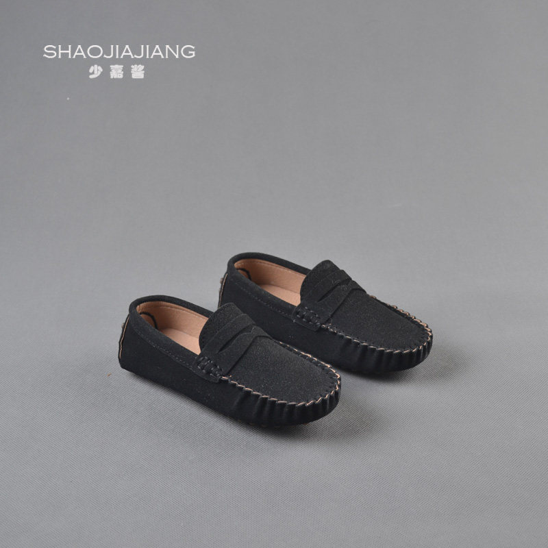 真皮儿童豆豆鞋2023春季潮男童女童宝宝鞋中小童软底软面黑色皮鞋