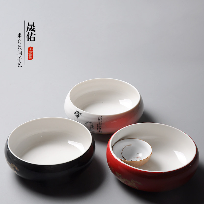 晟佑茶洗大号笔洗水盂水洗茶碗陶瓷功夫茶具配件茶道零配家用茶盘