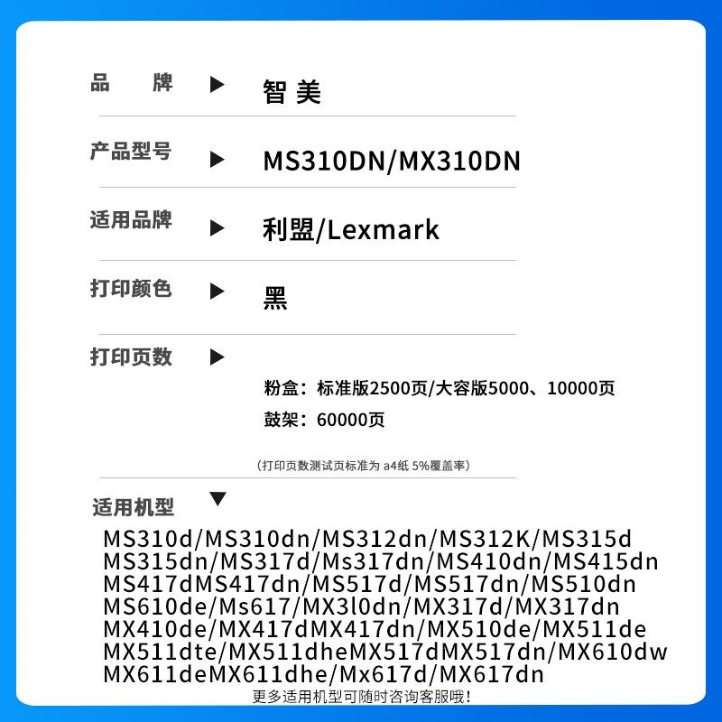 适用利盟MS310dn粉盒MS312dn 312k硒鼓MS410dn 510dn墨盒MS610dn