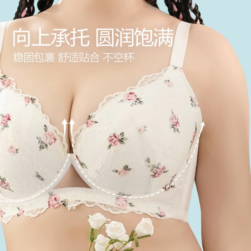 大码内衣女聚拢收副乳防下垂钢圈上托大胸显小文胸罩胖mm薄款