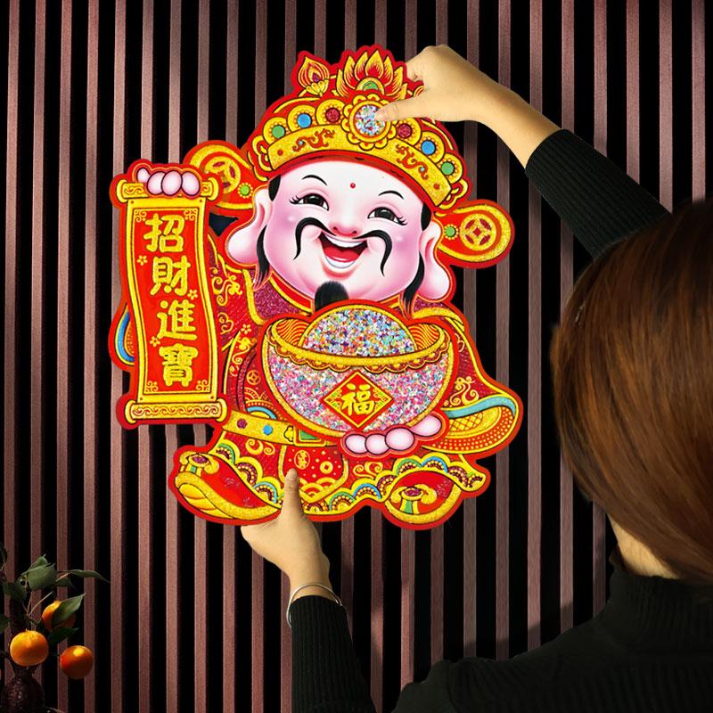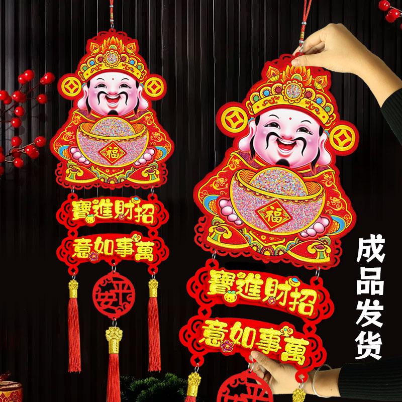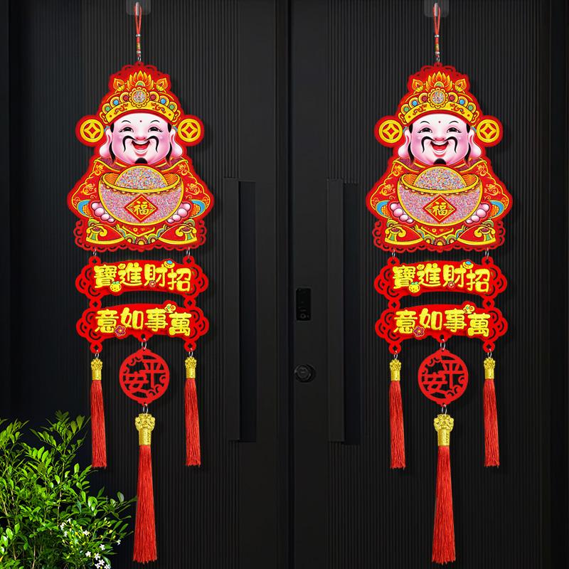 2025新款财神爷对贴福字门贴带背胶春节墙上挂饰客厅玄关喜庆挂件