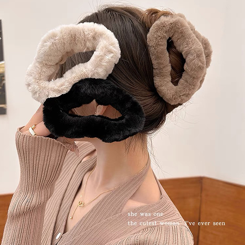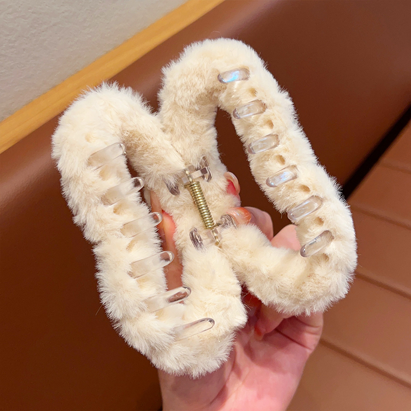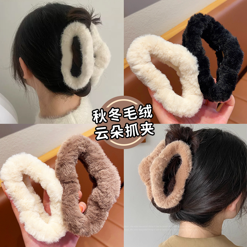 秋冬毛绒发夹镂空云朵抓夹女后脑勺盘发抓发量多大号鲨鱼夹子头饰