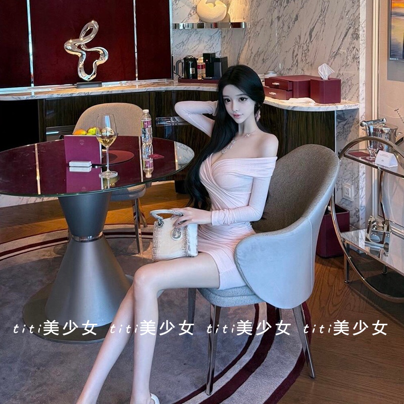 【TiTi美少女】纯欲风性感显胸紧身褶皱收腰包臀裙百搭打底连衣裙