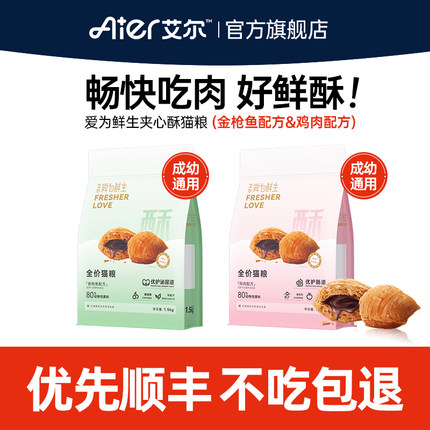 艾尔爱为鲜生夹心酥全价猫粮 鸡肉金枪鱼猫粮 成幼猫粮艾尔旗舰店