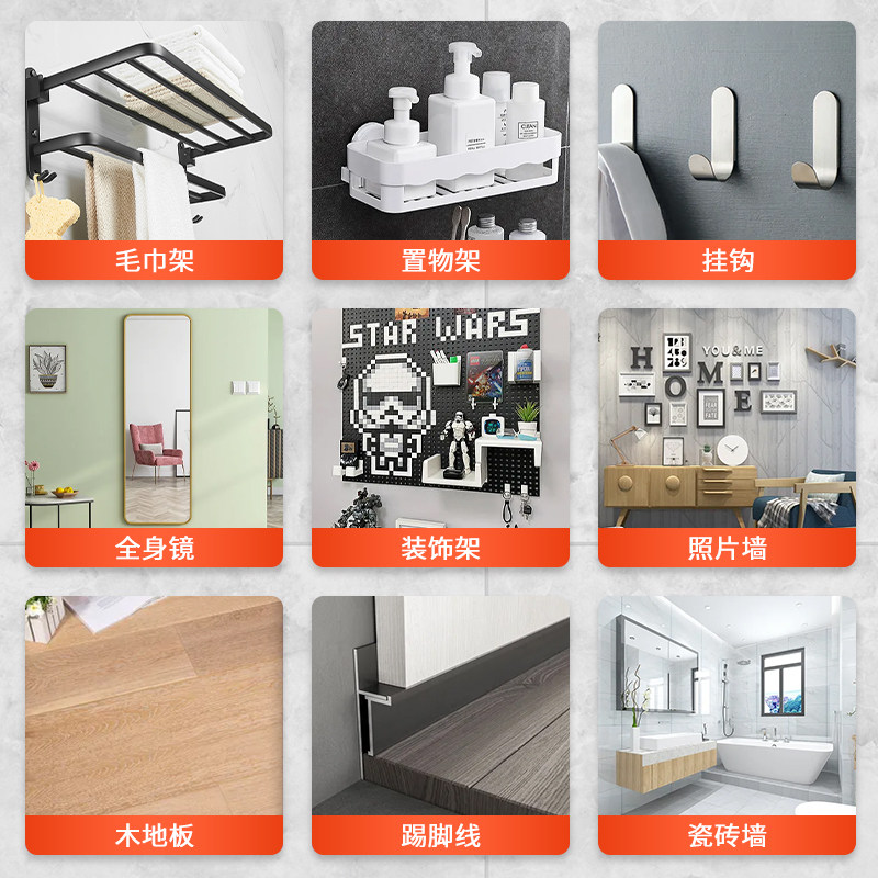 免钉胶强力胶高粘度厨房置物架卫生间毛巾架墙面挂钩支架万能胶代钉胶瓷砖踢脚线木地板免打孔粘墙浴室玻璃