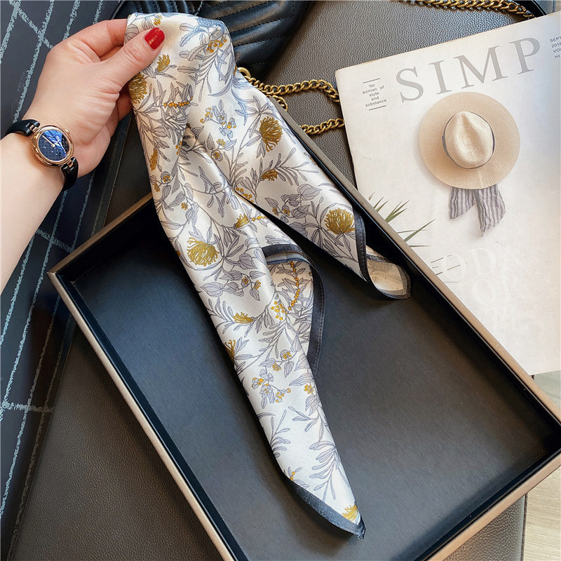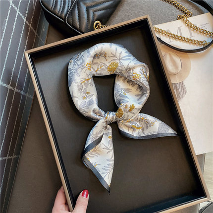 高级感灰色系真丝小方巾绑包装饰丝巾女春秋搭配衬衫领巾桑蚕丝带
