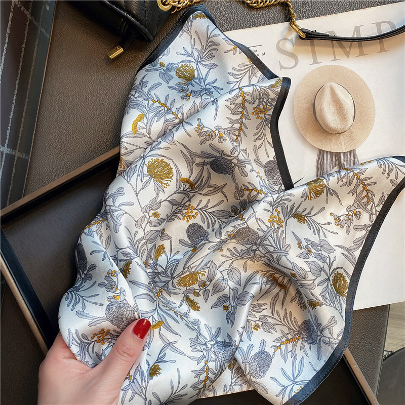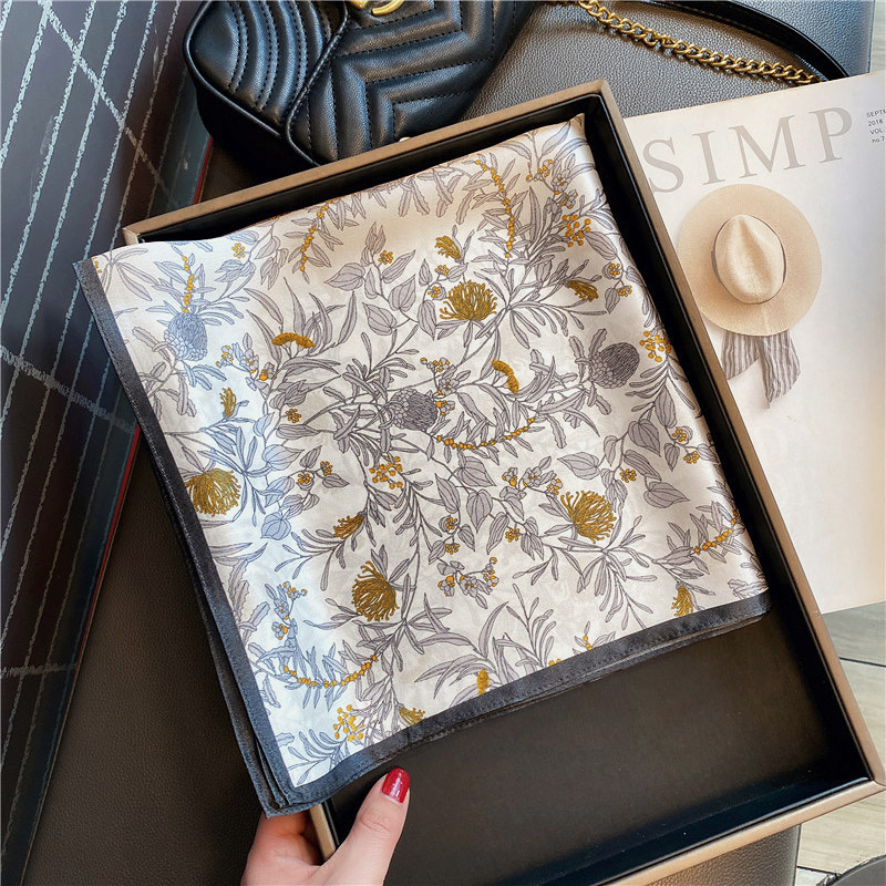 春夏秋冬数码印女小方巾送丝巾扣