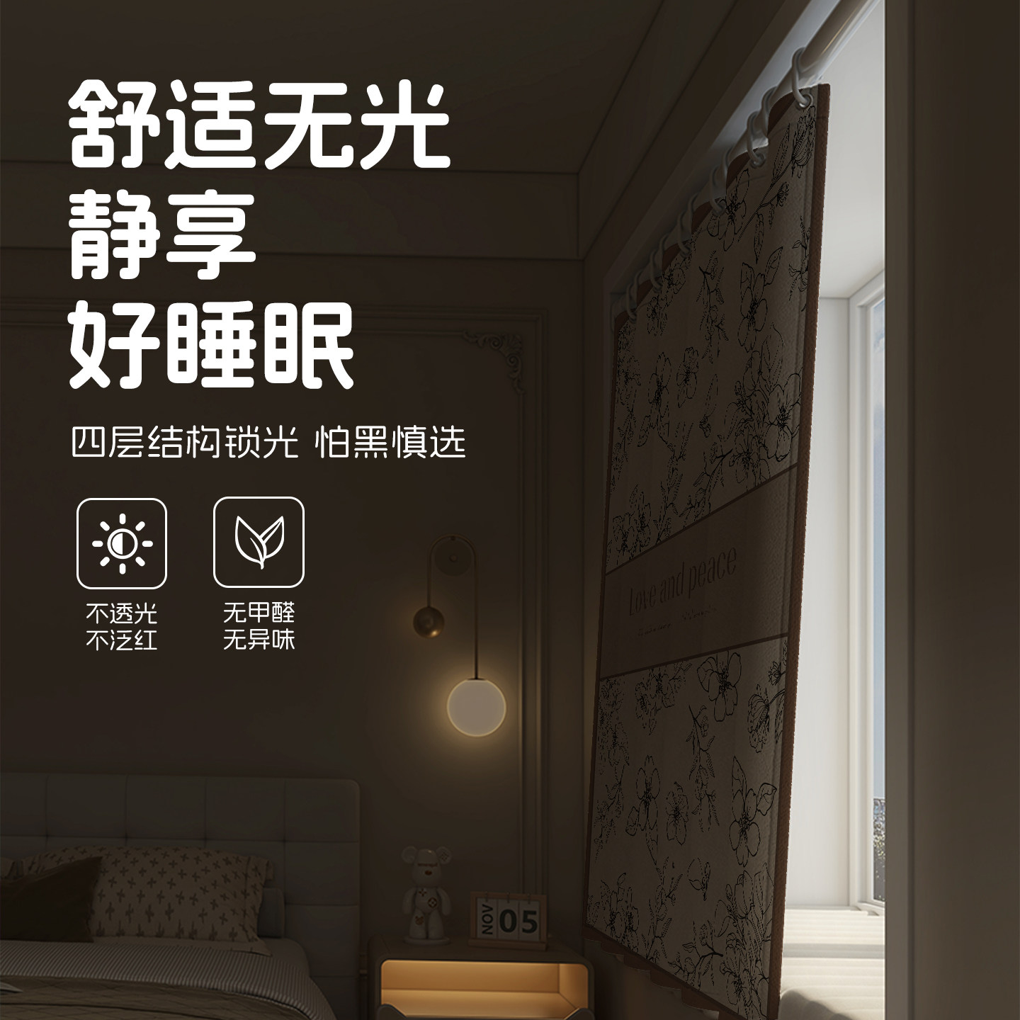小窗帘全遮光防晒隔热免打孔安装伸缩杆一整套卧室飘窗户简易美式