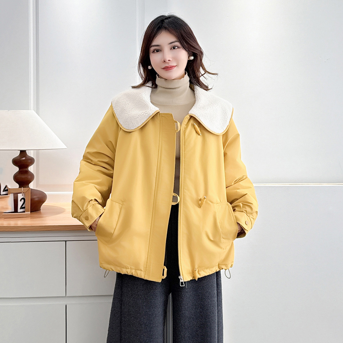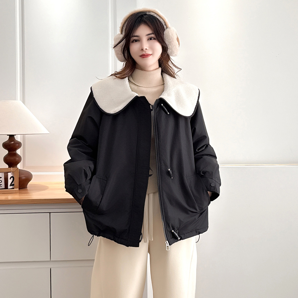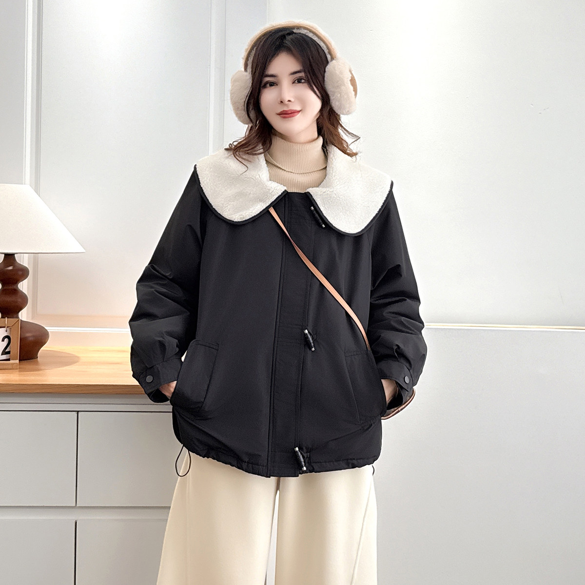 加肥大码胖mm娃娃领羊羔毛棉衣女