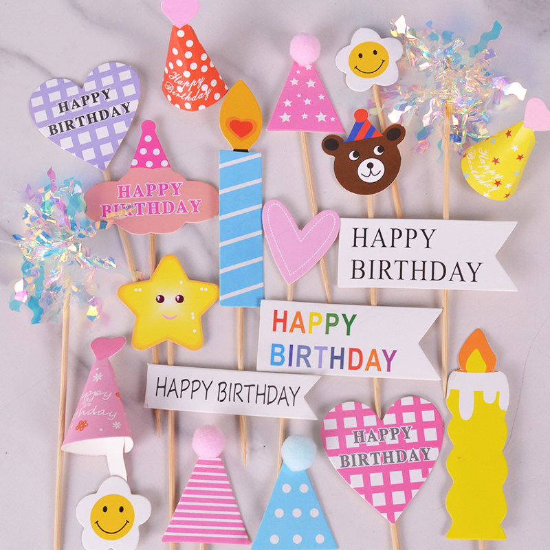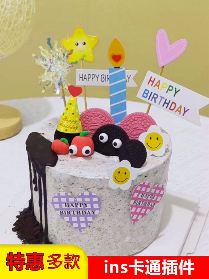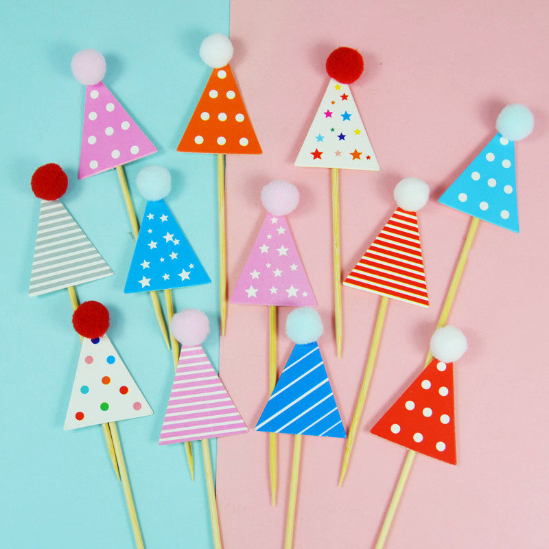 小帽子毛球生日蛋糕装饰插旗插件