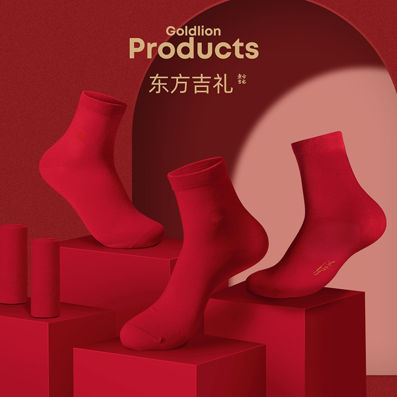 金利来袜子男士纯棉透气中长筒秋全棉结婚礼物本命虎年大红色ZB