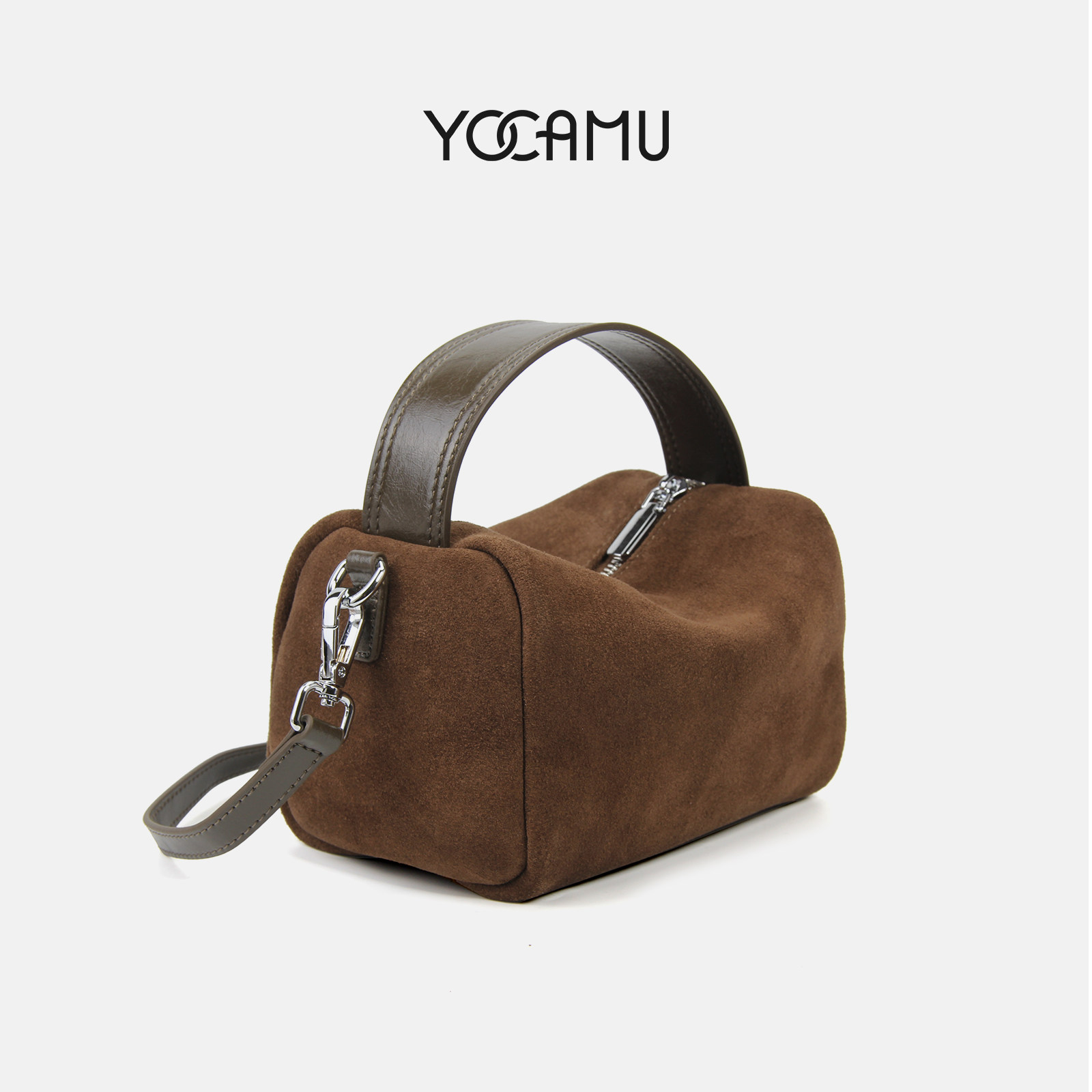 YOCAMU真皮波士顿枕头包复古休闲吐司包磨砂牛皮手提斜挎包高级感