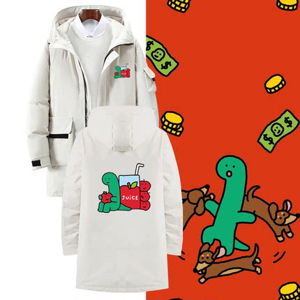 男女情侣定制中长款羽绒服JOGUMAN乔古漫绿色小恐龙苹果卡通可爱