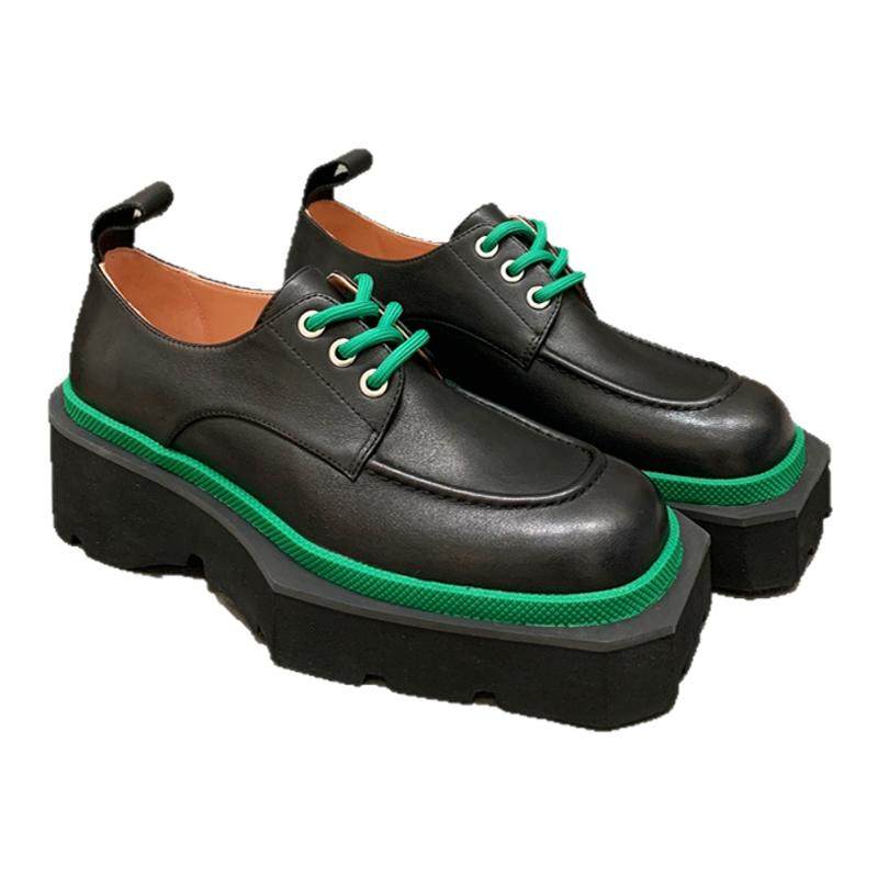 InkingPot彭姐 厚底增高单鞋真皮圆头系带休闲英伦风德比小皮鞋女