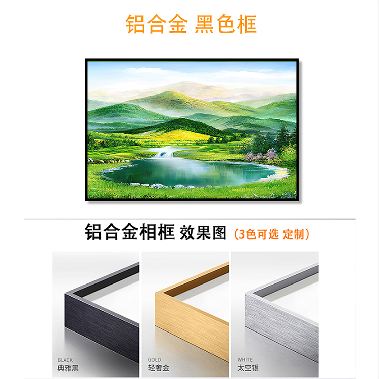 聚宝盆山水风景画青山绿水自粘画办公室聚财画客厅沙发背景装饰画