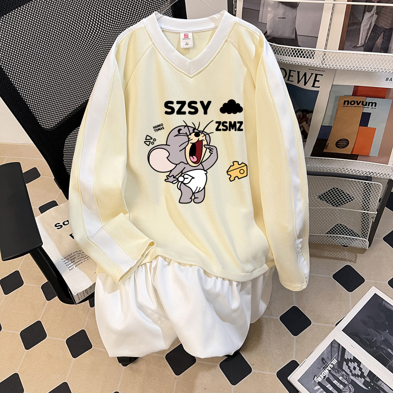 胖妹妹大码200斤趣味印花休闲套头卫衣女秋冬季中长款宽松褶皱裙