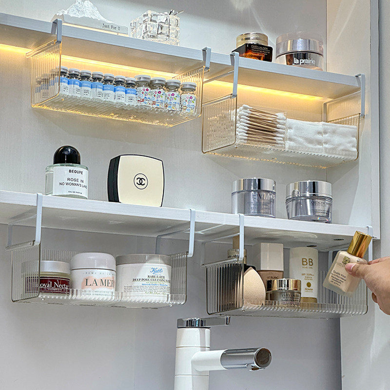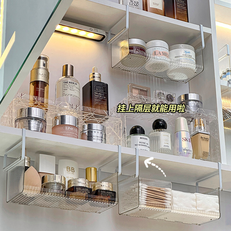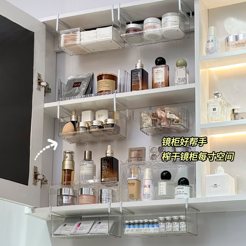 镜柜下收纳盒悬挂式化妆品置物架卫生间浴室柜护肤品面膜整理挂篮