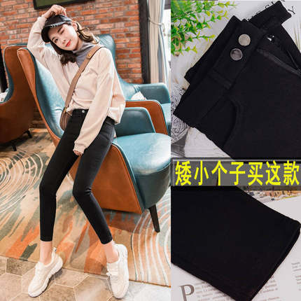 高腰八分裤女小个子小黑裤薄款150cm小脚黑色打底裤女外穿145魔术