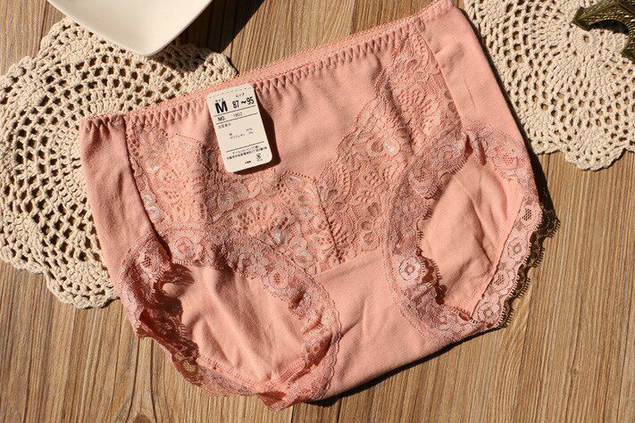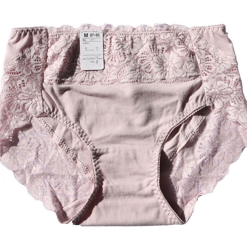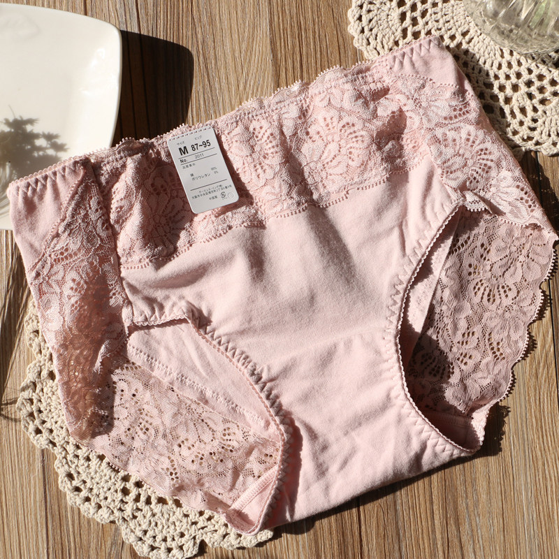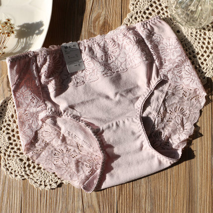 简约日单纯棉内裤女中高腰胖MM蕾丝边女士三角裤无痕包臀大码透气