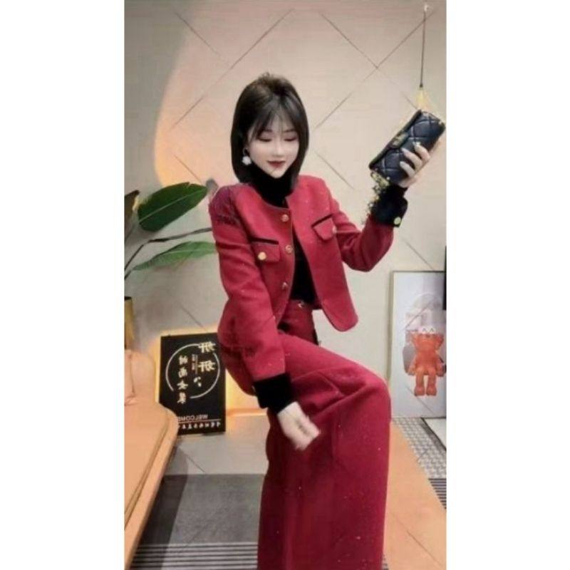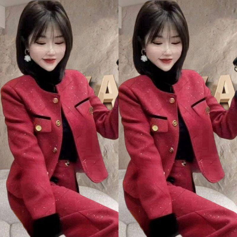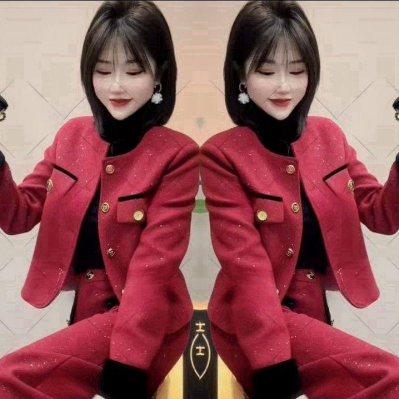 轻奢小香风两件套2025秋冬名媛风气质时尚洋气阔腿裤上衣女士套装